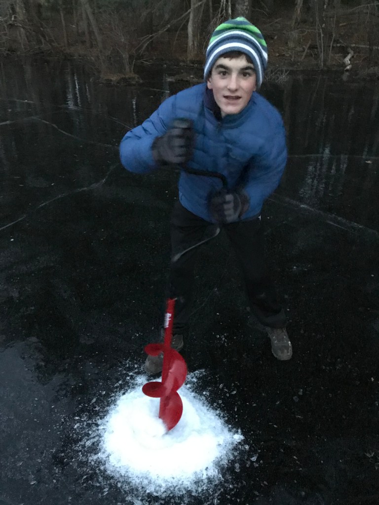 At $65, I’m actually very glad with the amount of use I’ve gotten out of this tool. I’ve drilled hundreds of holes in three ice seasons, and although the blades have certainly became a little duller over time, it held up until the end of the season this year. Even with the 14″ of ice we had on some ponds this year, I was still able to get through in short order. Obviously, if I had purchased a smaller size, like the 6″, I would have got through a lot quicker because there would have been less ice to cut through. Nonetheless, I liked knowing I could fit any sized fish through the hole should I encounter a big one (which is always the goal, right?).
