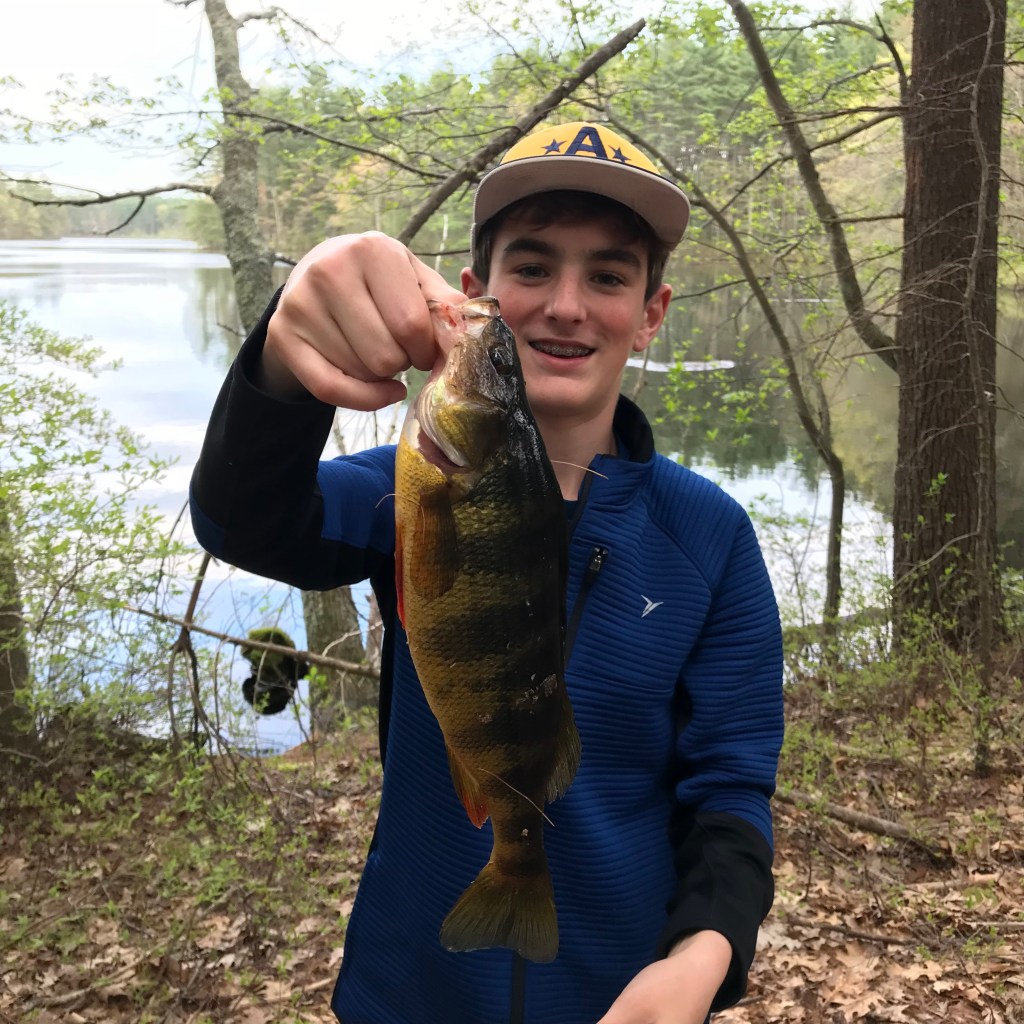 The only perch I’ve ever seen or caught in the pond was actually pretty large. Photo credit: Brady Magio.