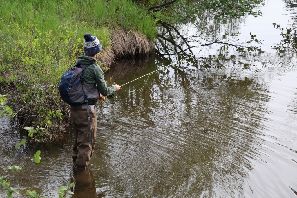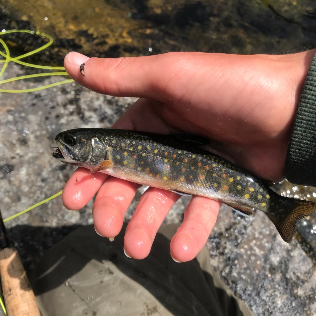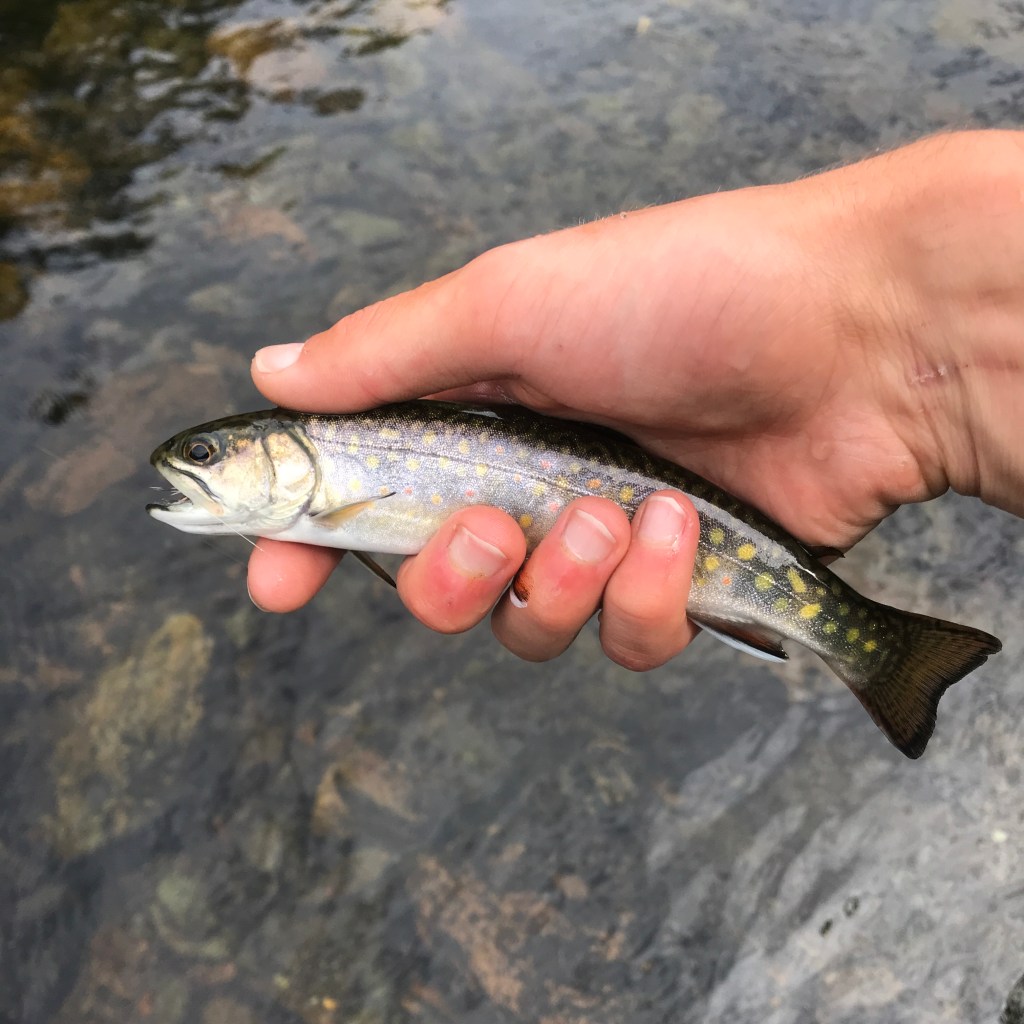 Later that afternoon, we went to one of the two rivers Brett suggested. Expecting a big river, and hopefully big brook trout, I brought three rods-five weight with a dry fly, 10′ 3 weight with a euro nymphing rig, and a seven weight with a streamer-to hopefully have a shot at covering multiple types of water.