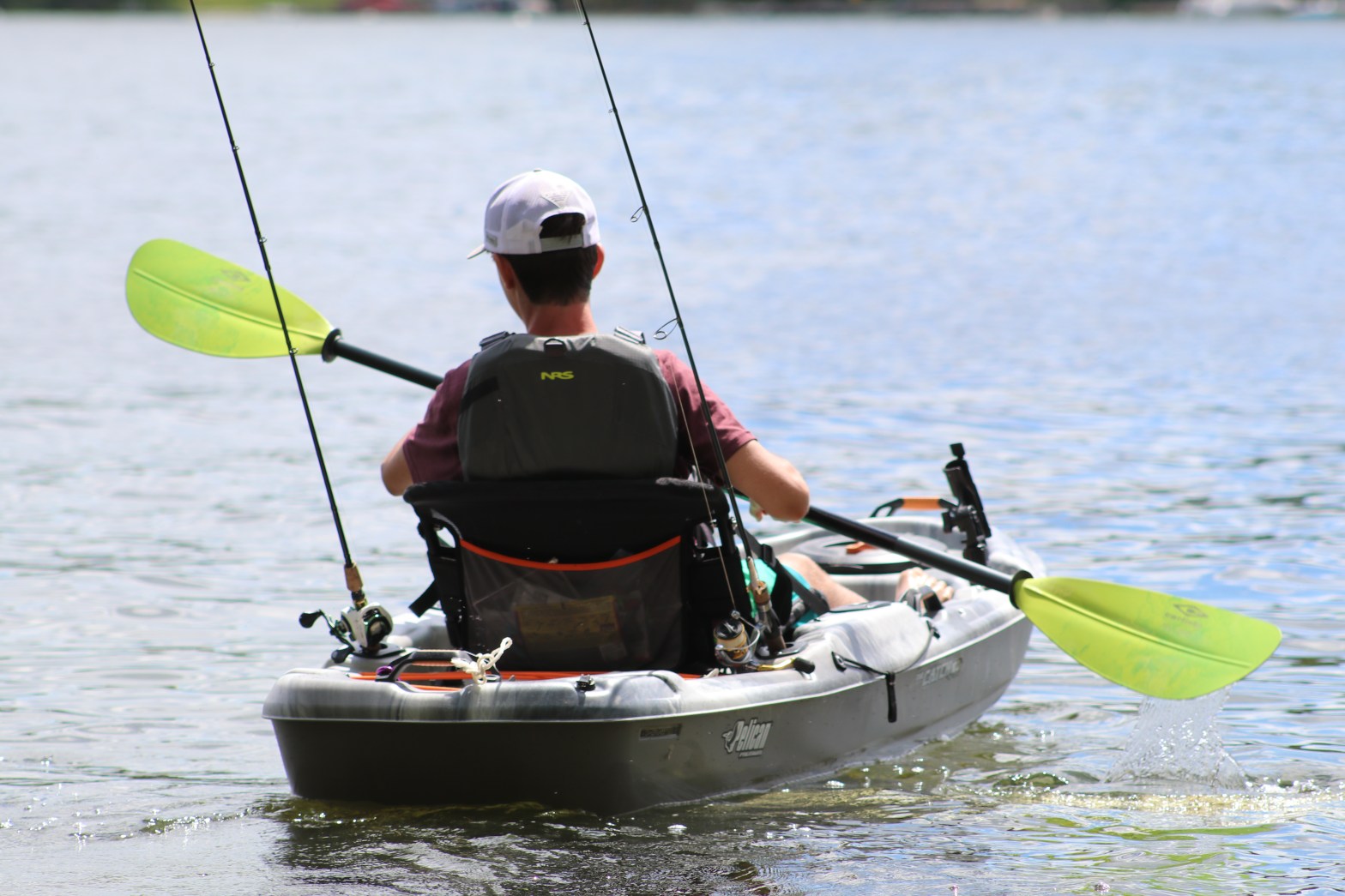 The first of the Pelican kayaks I tried was the Strike 100NXT, which, much to my mom and dad’s disappointment (this model was far less expensive than the one I ended up with), I didn’t like very much because of the uncomfortable seat and difficulty standing. The next kayak I tried, however, was the one. The Pelican Catch 100 just felt right to paddle and stand in, and the seat felt like a luxury recliner. I immediately knew which boat I’d be going home with that day.
