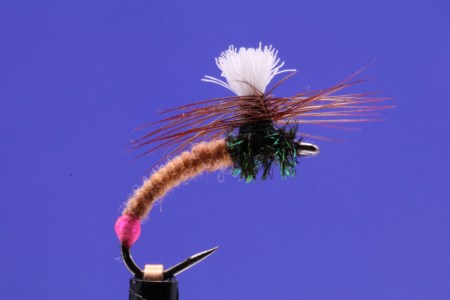 Though it has taken me a while to become familiar with the technique, euro nymphing has quickly become one of my favorite ways to catch fish. When I’m fishing a double-nymph rig, I almost always have a frenchie tied on, whether as the heavy point fly or as a lighter dropper. Frenchies are nothing more than a variation of the previously mentioned pheasant tail nymph, yet they have taken the fly fishing world by storm, and for good reason. These nymphs are the perfect combination of natural and attractive, with a plain pheasant tail body and a flashy shrimp pink ice dub collar. Perhaps the best part of this fly is its capacity to be fished in numerous sizes and weights depending on the forage present and the depths at which fish are holding. I typically fish a Frenchie in size 14 with 2.8 mm and 3.2 mm slotted tungsten beads.