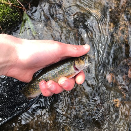 When I arrived at a section of riffles and plunge pools just upstream of the slightly larger pools, I switched to my old small-stream standby, a purple haze. Unsurprisingly, the fly quickly produced two small brookies, as well as a few others that managed to wriggle away. The trout seemed to rise slower than they typically would to an attractor pattern, perhaps due in part to a few naturals accompanying my offering on the water. They sipped my bug as I have heard cutthroats do out West: painstakingly slow and methodical, but well enough to get it lodged in their beak if you have the patience to refrain from striking prematurely.