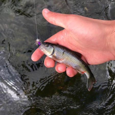 Last year at this time, I had terrific luck catching big (16-18″) fallfish on mouse flies. This year, I hoped to repeat this pattern. And I did, but the fish were not nearly the same size or volume as last year. I suspect the fish are slightly ahead of last year’s schedule, meaning the true giants already completed their spawn and retreated back to the lakes.