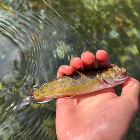 In the last five or so minutes, I spotted a nice brook trout rising to minuscule emerging insects with a regular cadence. I swapped to my trusty Sparkle Caddis Emerger, which had been quite successful for me during my summer trip to the Swift. On the first cast, as the fly gently drifted in the slow current, the trout came up and sipped the fly so subtly it was almost unnoticeable. After a short but spirited battle, a stunning 10-inch brook trout lay in my palm, slipping away before I could snap a picture. Man, I wish I had switched to dries earlier.