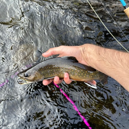 With a deadline for our return home, I was given a strict one-hour time limit to fish. With the minutes ticking by, I fished fast and hard. In the first 15 minutes, I was rewarded with a hefty brook trout on the Dungeon, though it shook free when I went to net it. The next 35 minutes were largely devoid of fish, save for one trout that nipped at the tail of the streamer.