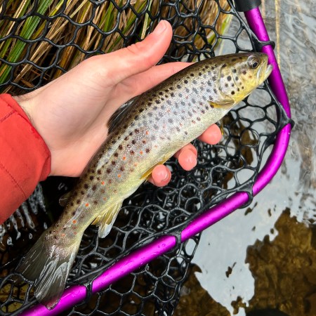 Right off the bat, I fooled a 12-inch brown in a small pool between two short sets of riffles. The fish took a Higa’s SOS, a new addition to my ever-expanding list of confidence patterns. With the weather cooling, I expected the browns to be dressed in their vibrant spawning attire; however, this one was as pale as a Halloween ghost.